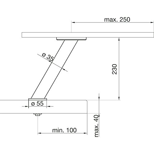 EBB 24.320.15 Irland-Console da Bar inclinata a 30°, 35 mm, in Acciaio Inox Spazzolato, Altezza: 230 mm, 1 Pezzo