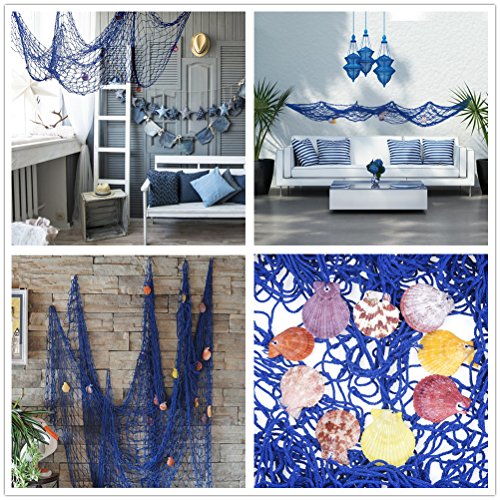 IROCH Stile Mediterraneo Fish Net Wall Hanging Nautico Decorativo Cotone Rete da Pesca con Conchiglie per la Decorazione Domestica, Partito, Ristorante e Altro - Decorativo Usa 39 "x 79" (Blu)