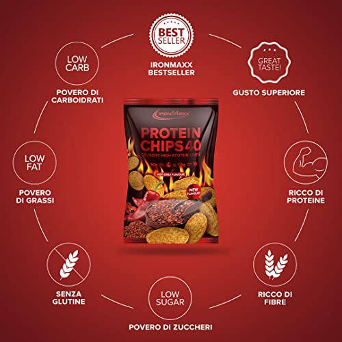 IronMaxx Protein Chips 40 - Patatine Proteiche - Ad Alto Contenuto Proteico e Basso Contenuto di Carboidrati - Gusto Hot Chili - 10 Sacchetti da 50 g