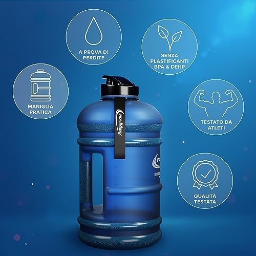 IronMaxx Water Gallon - Borraccia da 2200 ml a Prova di Perdite - Priva di BPA - Adatta per lo Sport - Blu Satinato