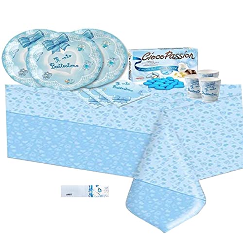 IRPot - KIT 50 COORDINATO BATTESIMO FIOCCO CELESTE+ CONFETTI CRISPO CIOCOPASSION
