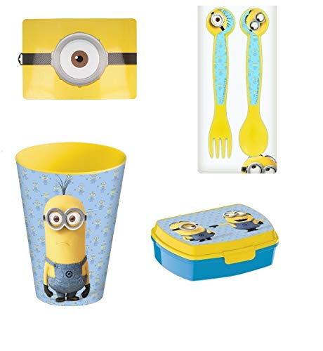 BBS IRPot - Set 3 Pezzi Minions Porta MERENDA + Bicchiere + TOVAGLIETTA + Posate