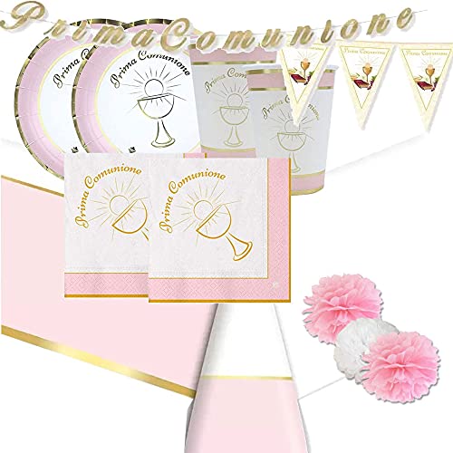 IRPot - Kit N 55 Prima Comunione Classic Rosa Coordinato ADDOBBI Party Festa