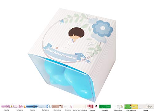 Irpot Scatoline portaconfetti PUDP41-099 + 10 Targhette/Toppers Adesivi Festa a Tema (La Mia Prima Comunione Celeste)