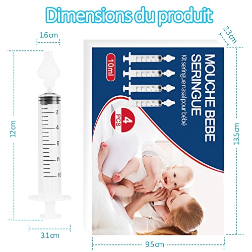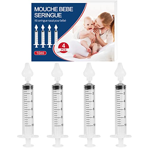Irrigatore Nasale, Professionale Siringa Nasale per Neonati e bambini 10 ml, sicuro e confortevole, atossico, insapore, riutilizzabile, con punta in silicone, portatile (4 pezzi)