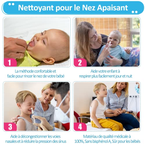 【Respirare Meglio】Il nostro detergente nasale può essere utilizzato per pulire e mantenere la cavità nasale dei bambini, sciacquare il naso per sciacquare la cavità nasale ostruita, mantenere e pulire la cavità nasale che inala la polvere e aiutare i bambini a respirare dolcemente.