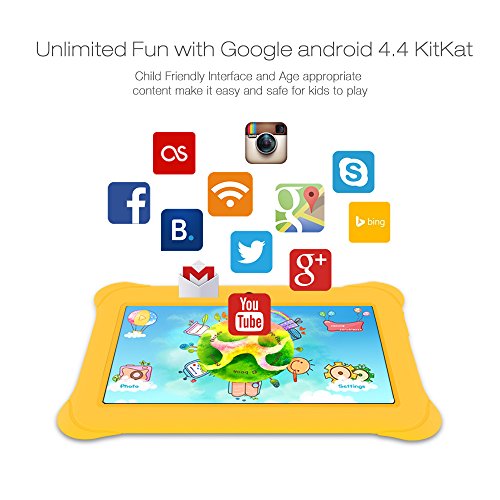 Processore Quad Core 1.3GHZ, sistema operativo Google Android 4.4 KitKat, offre velocità e responsabilità elevate per l'esecuzione di applicazioni didattiche e giochi, 7 "LCD multi-touch screen, risoluzione 1024 x 600