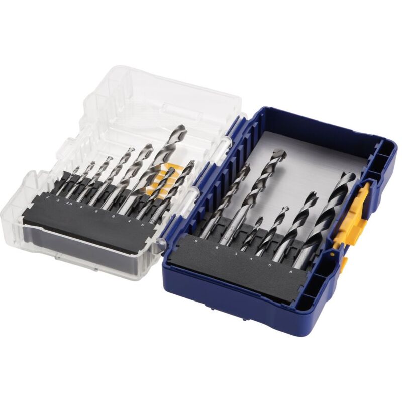 Range Bohrer, in una cassetta di plastica modulare piccola cascata dura, 14 pezzi. Sistema di archiviazione modulare Contenuto duro: HSS 2mm, 3mm, 3,5 mm, 4 mm, 6 mm, 8 mm, pietra: 4 mm, 5 mm, 6 mm, 8 mm, legno: 3 mm, 4 mm, 6 mm, 8 mm