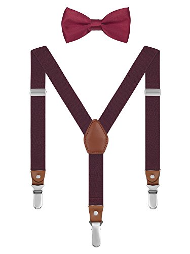 Irypulse Set Bretelle Chic e Papillon per 1-8 Anni Neonate Bambino 3 Retro Clip Y-Forma Regolabile Elastico Bordeaux