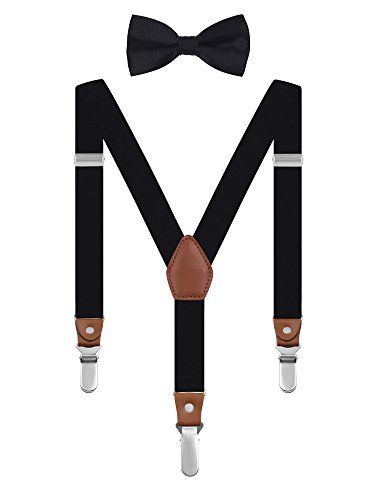 Irypulse Set Bretelle Chic e Papillon per 1-8 Anni Neonate Bambino 3 Retro Clip Y-Forma Regolabile Elastico Nero