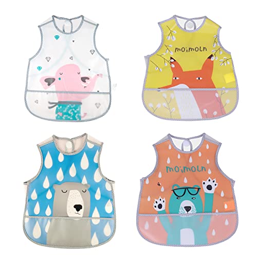 Irypulse 2 Pezzi Bavaglini Impermeabile EVA con Senza Maniche per 0-3 Anni Neonato Bambino Pittura, Mangiare, Giocare con Tasca Rosa/Naranja+Azul/Verde