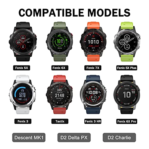 ✨[Modelli compatibili]: Questo cinturino in silicone da 26 mm è compatibile con Garmin Fenix 6X /Fenix 5X/Fenix 5X Plus/Fenix 7X /Fenix 6X Pro/Fenix 3/Fenix 3 HR/Descent MK1 /D2 Delta PX/D2 Charlie. Assicurarsi che la banda originale sia "QuickFit 26" prima del pagamento.
