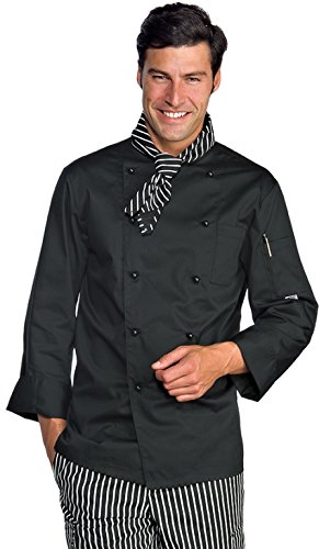 Isacco Giacca Cuoco Classica Nero, Nero, 5XL, 65% Poliestere 35% Cotone, Mezza Manica, Bottoni antipanico - Tessuto 195 gr/m²