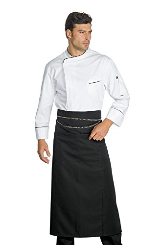 Isacco Giacca Cuoco Modello Wimbledon Bianco+Nero, Bianco+Nero, M, 100% Cotone, Manica Lunga