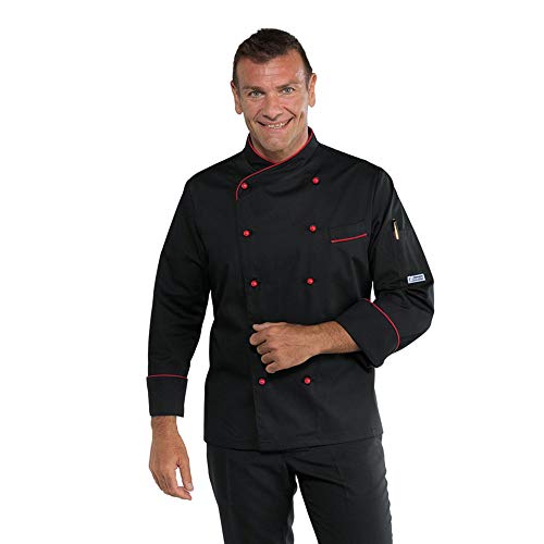 Isacco Giacca cuoco Panama - Isacco Nero+Rosso, Nero+Rosso, L, 65% Poliestere 35% Cotone, Manica Lunga