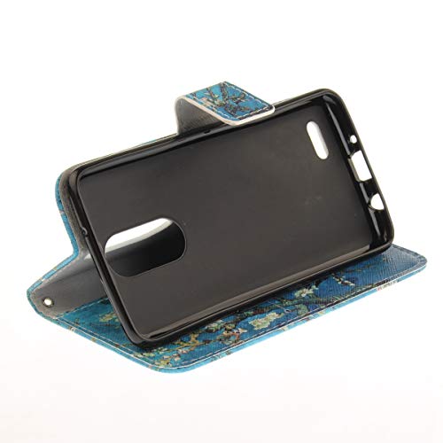 ISAKEN Compatibile con LG K8 2017 Cover - Bookstyle Flip Custodia in PU Pelle Protettiva Portafoglio Wallet Case Cover con Supporto di Stand/Carte Slot/Magnetica - Blu Fiori