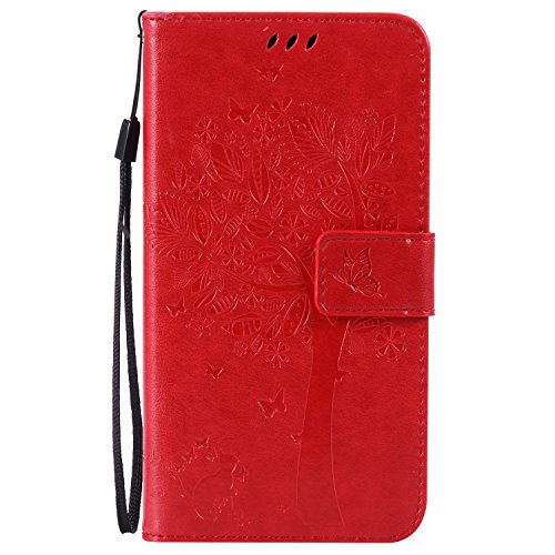 ISAKEN compatibile con LG G4 Custodia, Libro Flip Cover Portafoglio Wallet Case Albero Design Tinta Unita Caso in Pelle PU Protezione Caso con Supporto di Stand/Carte Slot/Chiusura - rossa
