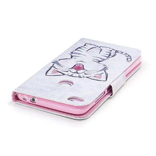 ISAKEN compatibile con Huawei P8 Lite 2017 Cover - Libro Wallet Flip Case con Colorate Pattern, Portafoglio Custodia in PU Pelle Cover con Supporto di Stand/Carte Slot/Chiusura, Gatto