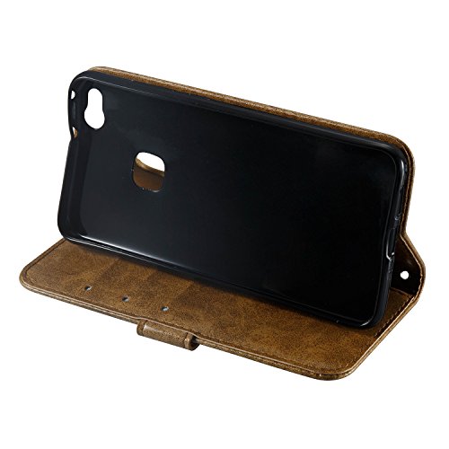 ISAKEN Compatibile con Huawei P10 Lite Custodia Cover, Libro Flip Cover con Strap, PU Pelle Protettiva Portafoglio Case Wallet Caso con Supporto di Stand/Carte Slot/Magnetica - Cranio: Coffee