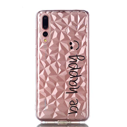 ISAKEN Compatibile con Huawei P20 PRO Custodia Morbida Silicone Custodia Protettivo TPU Gel Sottile Trasparente Cover Soft Bumper Cover Case Sottile AntiGraffio Antiurto, Be Happy