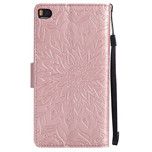 ISAKEN Compatibile con Huawei P8 Custodia[PU Pelle] [Shock-Absorption], Libro Flip Cover Portafoglio Case Tinta Unita Caso con Supporto di Stand/Carte Slot/Magnetica - Girasole: Rose Gold
