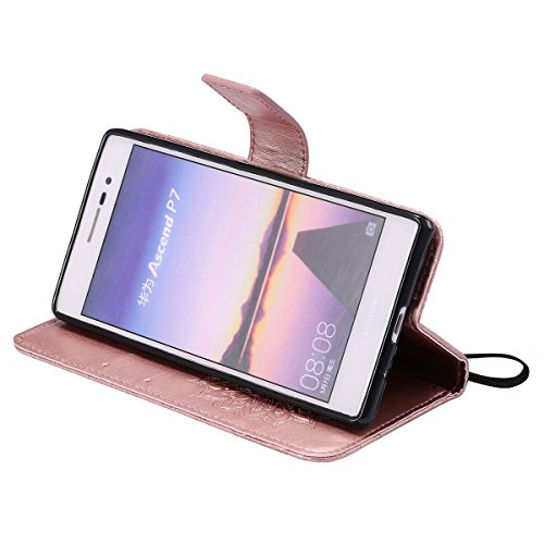 ISAKEN Compatibile con Huawei P7 Custodia[PU Pelle] [Shock-Absorption], Libro Flip Cover Portafoglio Case Tinta Unita Caso con Supporto di Stand/Carte Slot/Magnetica - Girasole: Rose Gold