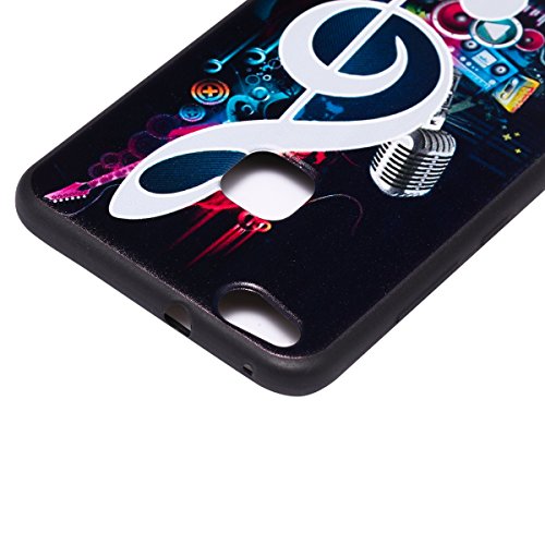 ISAKEN Compatibile con Huawei P10 Lite Custodia (No Strap) - Ultra Sottile Morbido TPU Cover Protezione Posteriore Case Antiurto Nero Bumper Caso Soft Sollievo TPU Backcover, Musica