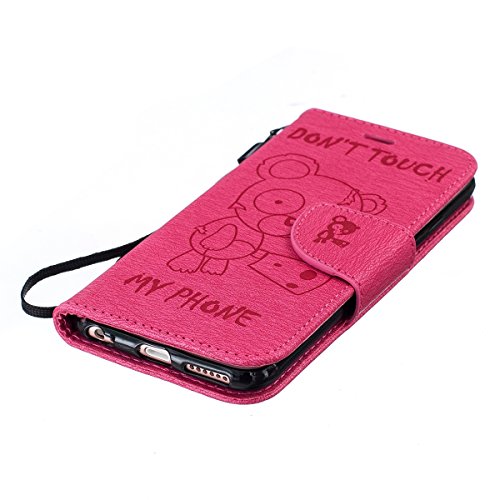 ISAKEN Compatibile con iPhone 6S/iPhone 6 4.7" Flip Cover con Strap Sbalzato Embossed Design in Pelle PU Case Cover Protettiva Flip Portafoglio Caso Supporto di Stand/Carte Slota - Orso:ROSEO