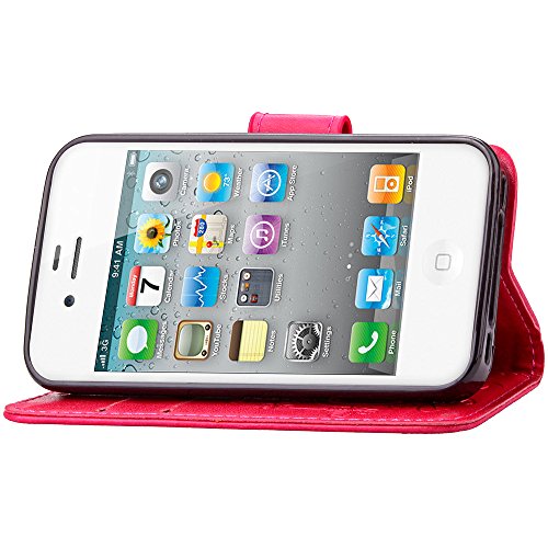 ISAKEN Compatibile con iPhone 4/4S Cover, Custodia in Pelle PU, Supporto Stand e Porta Carte Integrati Portafoglio Flip Custodia di Pelle Case Flip Stile Libro Cover - Fiori: ROSEO
