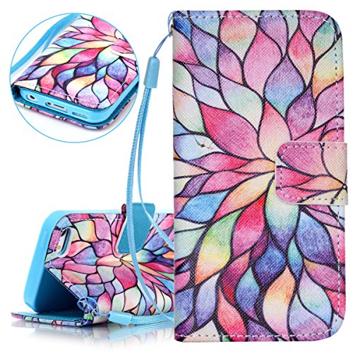 ISAKEN Compatibile con iPhone 5 5S SE Custodia Cover [PU Pelle] [Shock-Absorption], Libro Portafoglio Design PU Leather Cover con Credit Card Slot Flip Protettivo Stand Copertura - Fiori Colorate