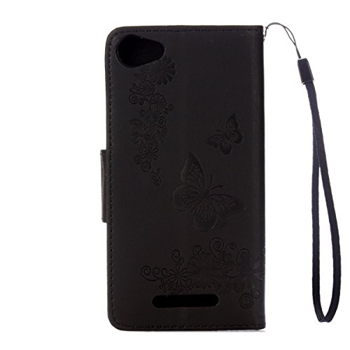 ISAKEN Compatibile con Wiko Jerry Custodia, Libro Sbalzato Embossed Case Wallet Cover in Pelle PU Protettiva Flip Portafoglio Caso con Supporto di Stand/Carte Slot/Chiusura - Farfalla: Nero