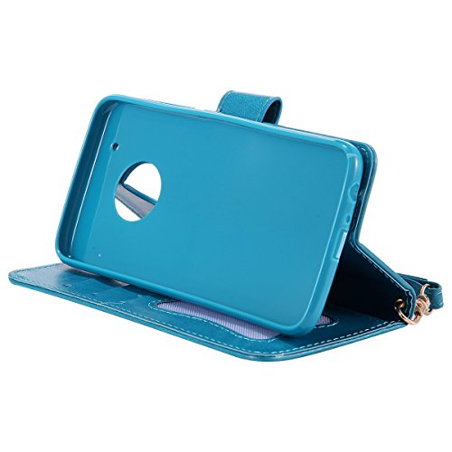 ISAKEN Compatibile con Lenovo Moto G5 Plus Custodia, Libro Agganciabile Luminosa Case PU Pelle Portafoglio Cover con Lampeggiante Wallet Flip Caso con Supporto di Stand/Carte Slot, Blu