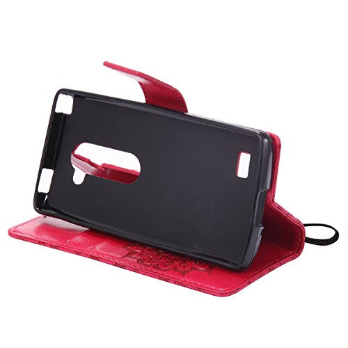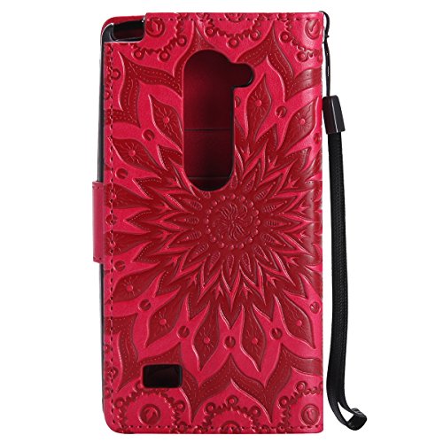 ISAKEN Compatibile con LG Leon/C40/H340 Custodia[PU Pelle] [Shock-Absorption], Libro Flip Cover Portafoglio Case Tinta Unita Caso con Supporto di Stand/Carte Slot/Magnetica - Girasole: Rossa
