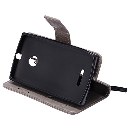 ISAKEN compatibile con Microsoft Nokia Lumia 435 Custodia, Libro Flip Cover Portafoglio Wallet Case Albero Design in Pelle PU Protezione Caso con Supporto di Stand/Carte Slot/Chiusura - grigio