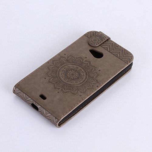 ISAKEN Compatibile con Microsoft Nokia Lumia 535 Custodia[PU Pelle] [Shock-Absorption], Sbalzato Embossed Case Flip Portafoglio Wallet Caso con Supporto di Stand/Carte Slot/Chiusura - Grigio