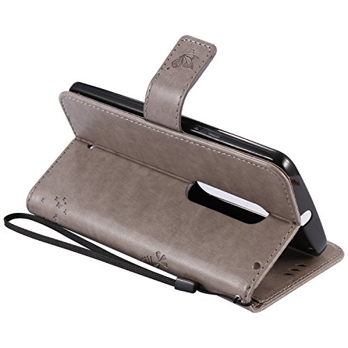 ISAKEN Compatibile con Motorola Moto X Play Custodia, Libro Flip Cover Portafoglio Wallet Case Albero Design in Pelle PU Protezione Caso con Supporto di Stand/Carte Slot/Chiusura - Grigio