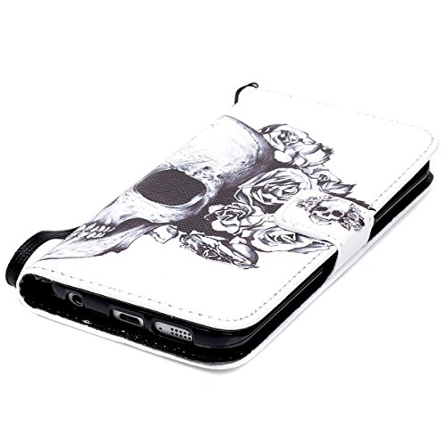 ISAKEN compatibile con Samsung Galaxy S6 Cover - Libro Wallet Flip Case con Colorate Pattern, Portafoglio Custodia in PU Pelle Cover con Supporto di Stand/Carte Slot/Chiusura, Cranio