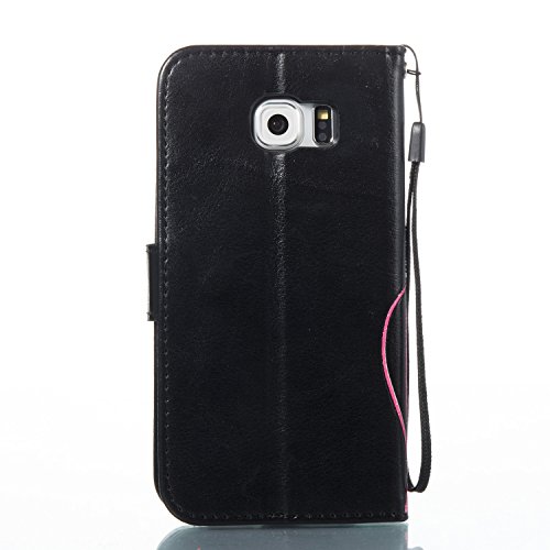 ISAKEN compatibile con Samsung Galaxy S6 Cover - Libro Wallet Flip Case con Brillantini/Glitters, Portafoglio Custodia in PU Pelle Cover con Supporto di Stand/Carte Slot/Chiusura, Nera