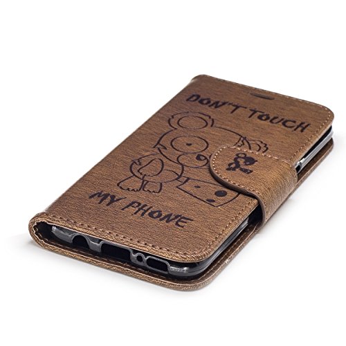 ISAKEN Compatibile con Samsung Galaxy S8 Flip Cover con Strap Sbalzato Embossed Design in Pelle PU Case Cover Protettiva Flip Portafoglio Caso Supporto di Stand/Carte Slota - Orso:Coffee
