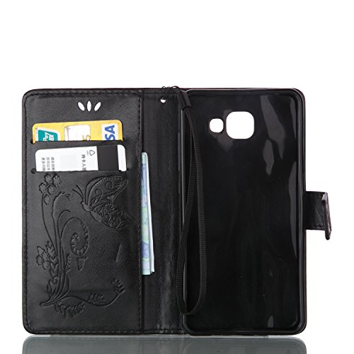 ISAKEN Compatibile con Samsung Galaxy A3 2016 Custodia Cover, Farfalla Design in Pelle PU Case Cover Flip Portafoglio Case con Supporto di Stand/Strap/Carte Slot/Chiusura - Farfalla: Nero