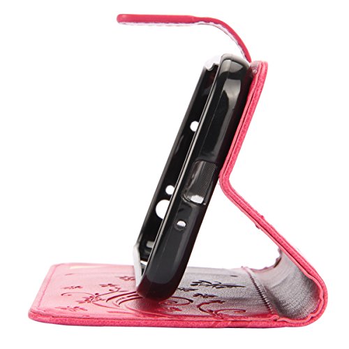 ISAKEN Compatibile con Samsung Galaxy S4 Custodia Cover - Farfalla Design in Pelle PU Cover Flip Portafoglio Cover con Supporto di Stand/Strap/Carte Slot/Chiusura - Butterfly: Rosa
