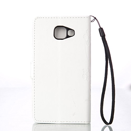 ISAKEN Compatibile con Samsung Galaxy A3 2016 Custodia Cover, Farfalla Design in Pelle PU Case Cover Flip Portafoglio Case con Supporto di Stand/Strap/Carte Slot/Chiusura - Farfalla: Bianco