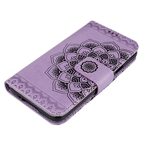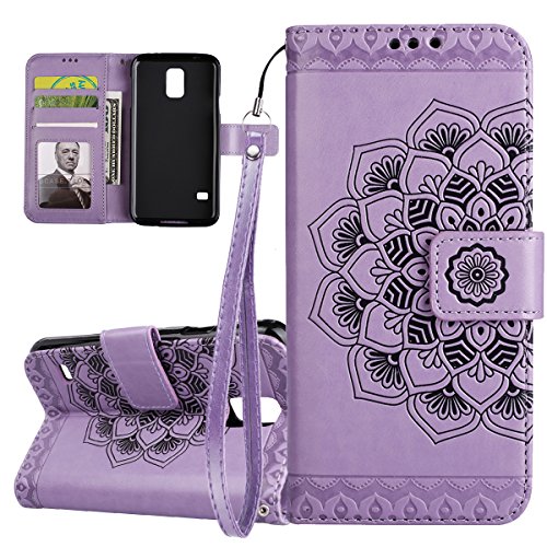 ISAKEN Compatibile con Samsung Galaxy S5 Custodia Cover, Libro PU Pelle Wallet Cover Flip Portafoglio Protezione Custodia con Supporto di Stand/Carte Slot/Strap[Shock-Absorption], Fiori: Viola