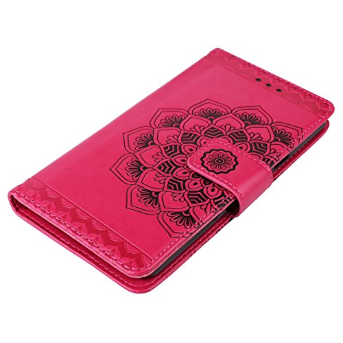 ISAKEN Compatibile con Samsung Galaxy J7 2016 Custodia Cover, Libro PU Pelle Wallet Cover Flip Portafoglio Protezione Custodia con Supporto di Stand/Carte Slot/Strap[Shock-Absorption], Fiori: ROSEO