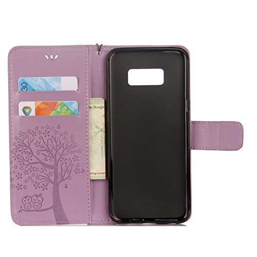 ISAKEN Compatibile con Samsung Galaxy S8 Custodia Cover, Libro Flip Cover con Strap, PU Pelle Protettiva Portafoglio Case Wallet Caso con Supporto di Stand/Carte Slot/Magnetica - Gatto: Viola