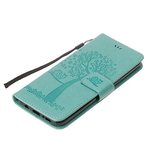 ISAKEN Compatibile con Samsung Galaxy S6 Edge Custodia Cover, Libro Flip Cover con Strap, PU Pelle Protettiva Portafoglio Case Wallet Caso con Supporto di Stand/Carte Slot/Magnetica - Gatto: Verde