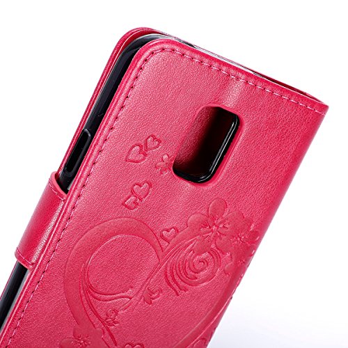 ISAKEN Compatibile con Samsung Galaxy S5 Mini Custodia Cover con Strap Tinta Unita Case PU Pelle Protettiva Portafoglio Cover Flip Wallet Caso con Supporto di Stand/Carte Slot, Amore: ROSEO