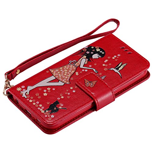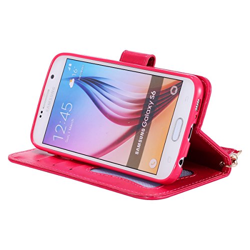 ISAKEN Compatibile con Samsung Galaxy S6 Custodia, Libro Agganciabile Luminosa Case PU Pelle Portafoglio Cover con Lampeggiante Wallet Flip Caso con Supporto di Stand/Carte Slot, Rossa