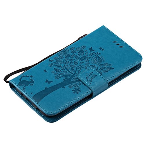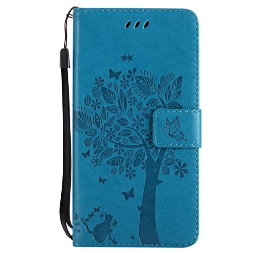 ISAKEN Compatibile con Samsung Galaxy J5 2017 Custodia, Libro Flip Cover Portafoglio Wallet Case Albero Design in Pelle PU Protezione Caso con Supporto di Stand/Carte Slot/Chiusura - Blu