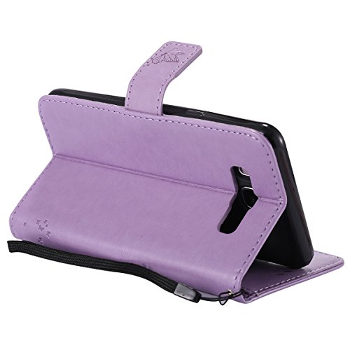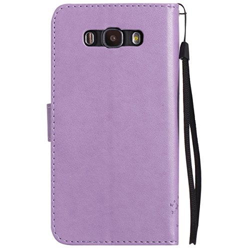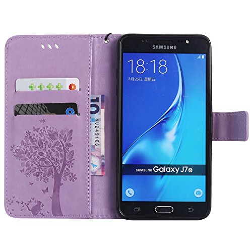 ISAKEN Compatibile con Samsung Galaxy J7 2016 Custodia, Libro Flip Cover Portafoglio Wallet Case Albero Design in Pelle PU Protezione Caso con Supporto di Stand/Carte Slot/Chiusura - Viola Chiaro